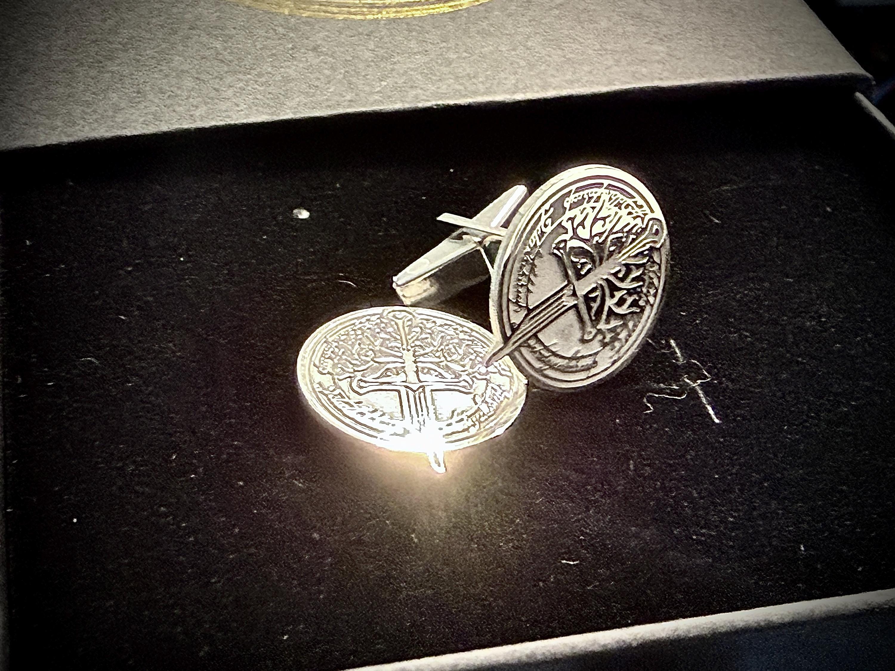 Elegant 925K Silver Cufflinks with Aragorn's Broken Sword & White Tree Design - Personalized for Weddings