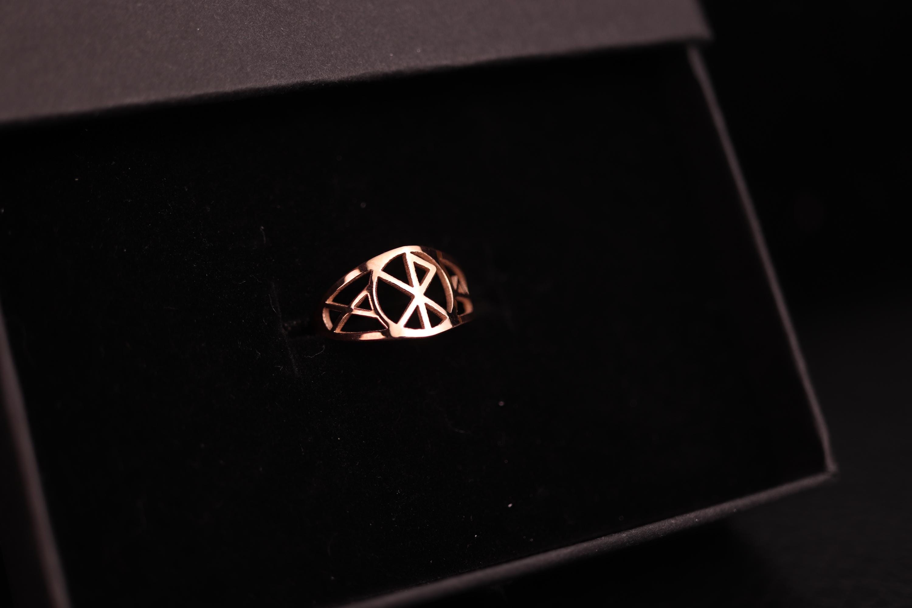 Each ring is carefully crafted to maintain the clean lines and detailed rune geometry seen in the design. Because of the handcrafted process, slight variations may occur, making every ring unique.