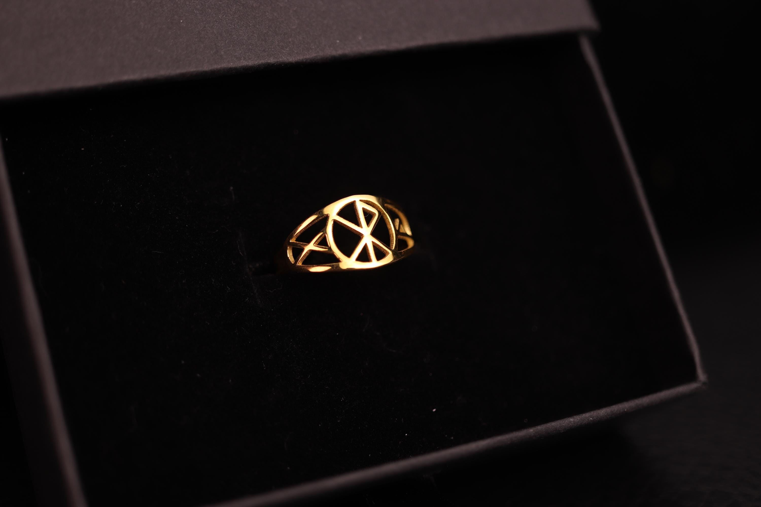 This Bind Rune Ring is a unique Norse-inspired piece crafted from solid 14K gold. The geometric rune symbol is carefully integrated into the ring design, creating a powerful yet minimalist piece of jewelry inspired by ancient Viking and Nordic symbolism.