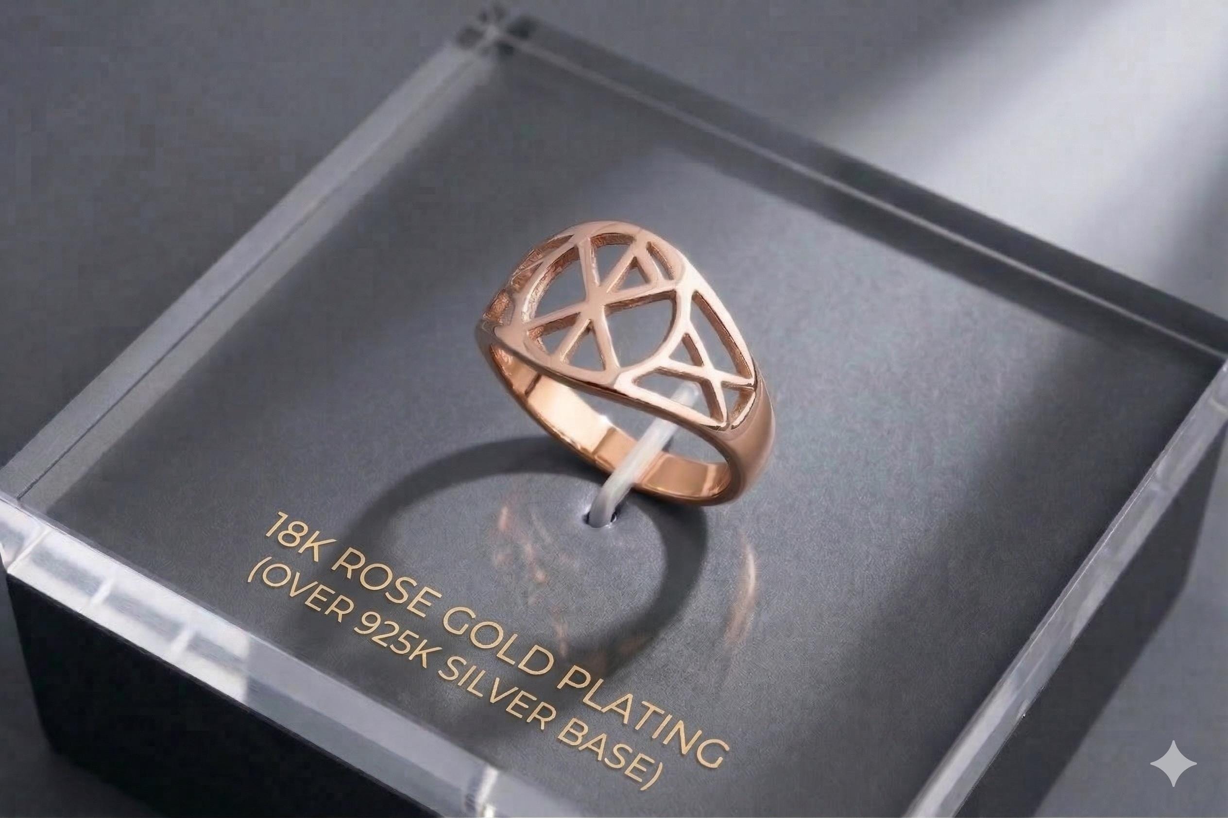 Each ring is carefully crafted to maintain the clean lines and detailed rune geometry seen in the design. Because of the handcrafted process, slight variations may occur, making every ring unique.